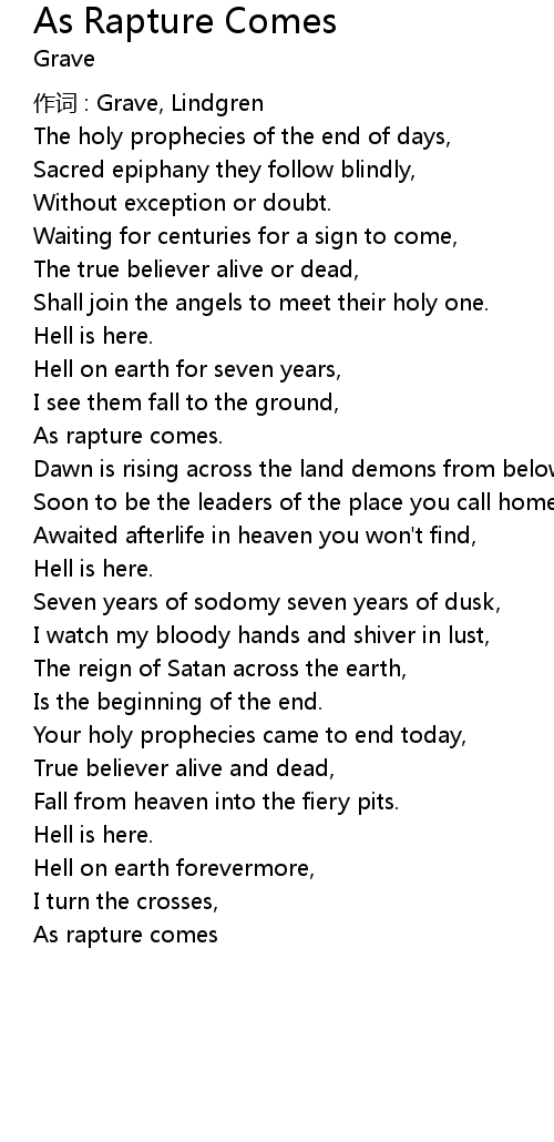 | 歌曲 | As Rapture Comes |