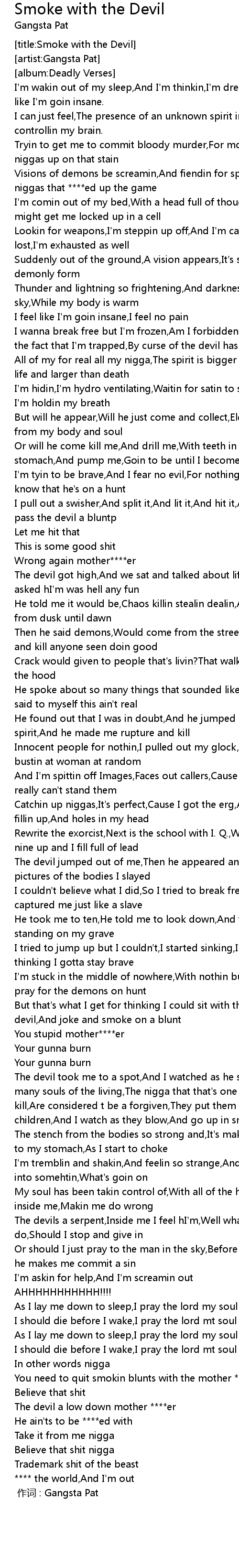 | [00:00.00] | zuò cí : Gangsta Pat |