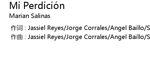 | [00:00.000] | 作词 : Jassiel Reyes/Jorge Corrales/Angel Baillo/Servado Yález |