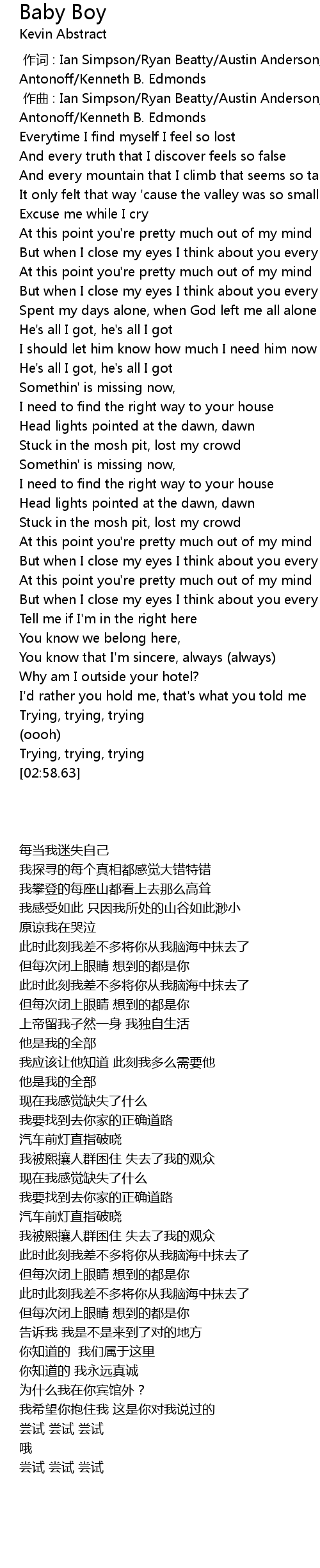 | [00:00.000] | 作词 : Ian Simpson/Ryan Beatty/Austin Anderson/Romil Hemnani/Jack Antonoff/Kenneth B. Edmonds |