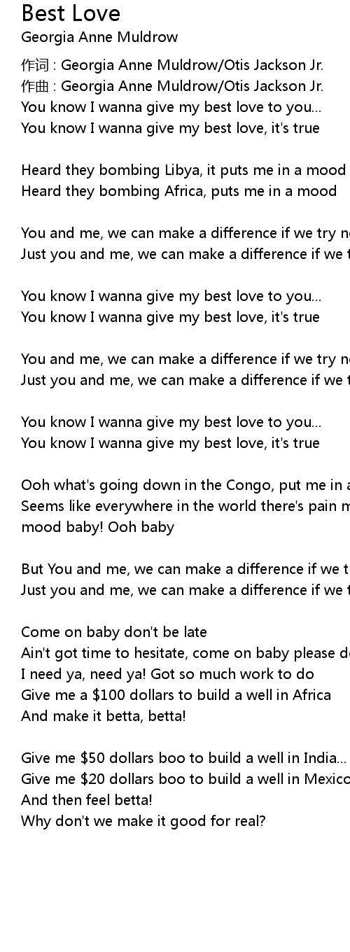 | You know I wanna give my best love, it's true | |