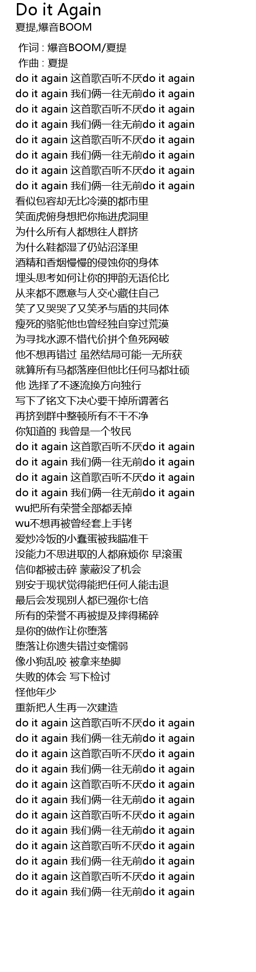 | [02:37.33] | do it again zhe shou ge bai ting bu yan do it again |