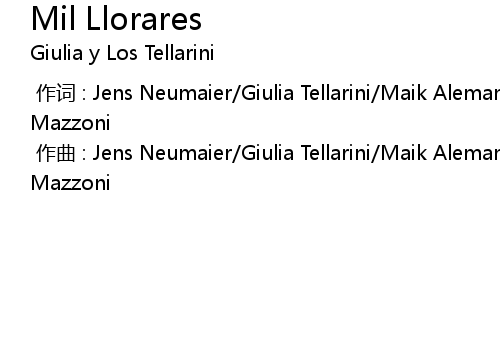 | [00:00.000] | zuo qu : Jens Neumaier Giulia Tellarini Maik Alemany Alejandro Mazzoni |