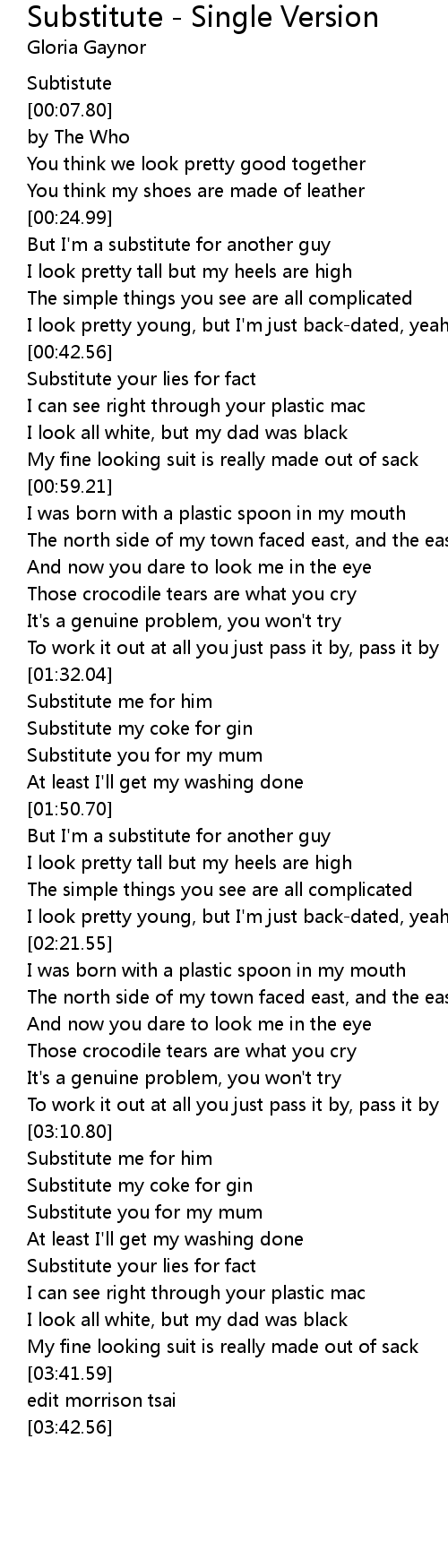 Substitute - Single Version 歌词