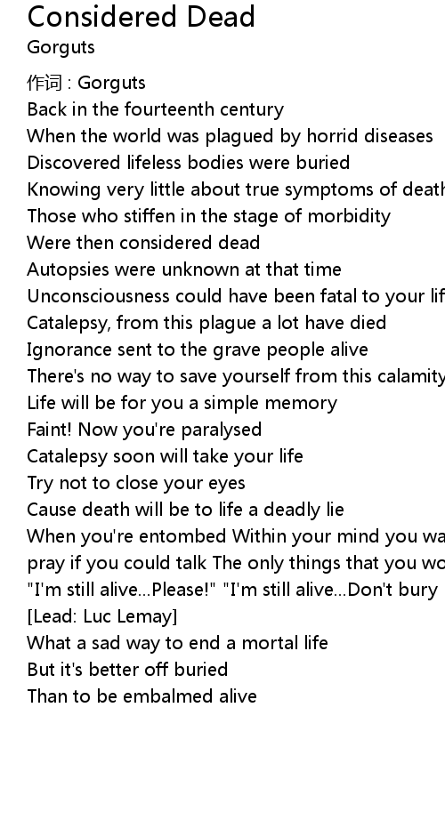 | "I'm still alive...Please!" "I'm still alive...Don't bury me!" | |