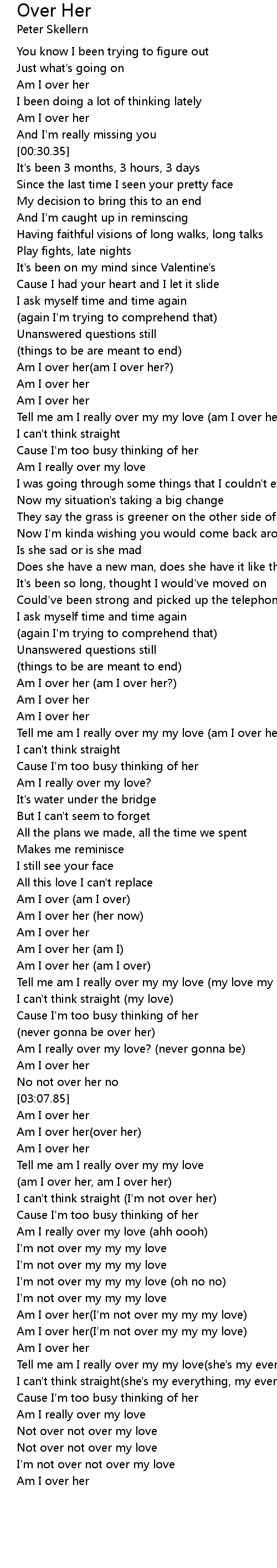 Am I over her(I'm not over my my my love) |