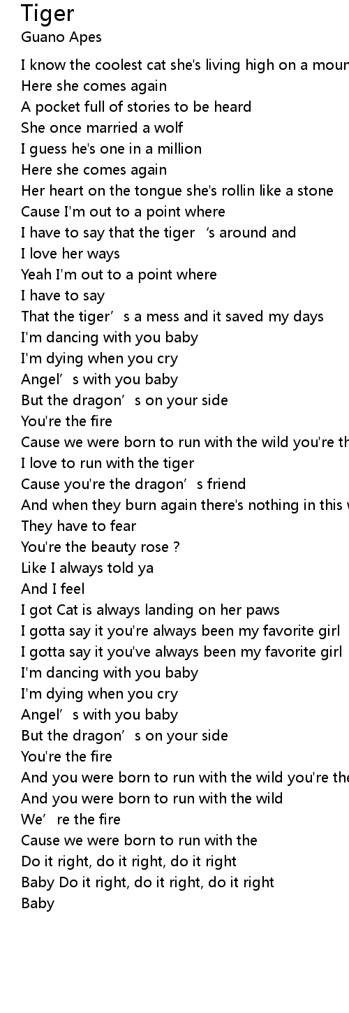| That the tiger' s a mess and it saved my days | |