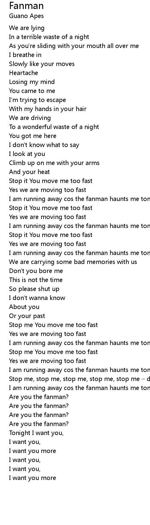 | I am running away cos the fanman haunts me tonight | |