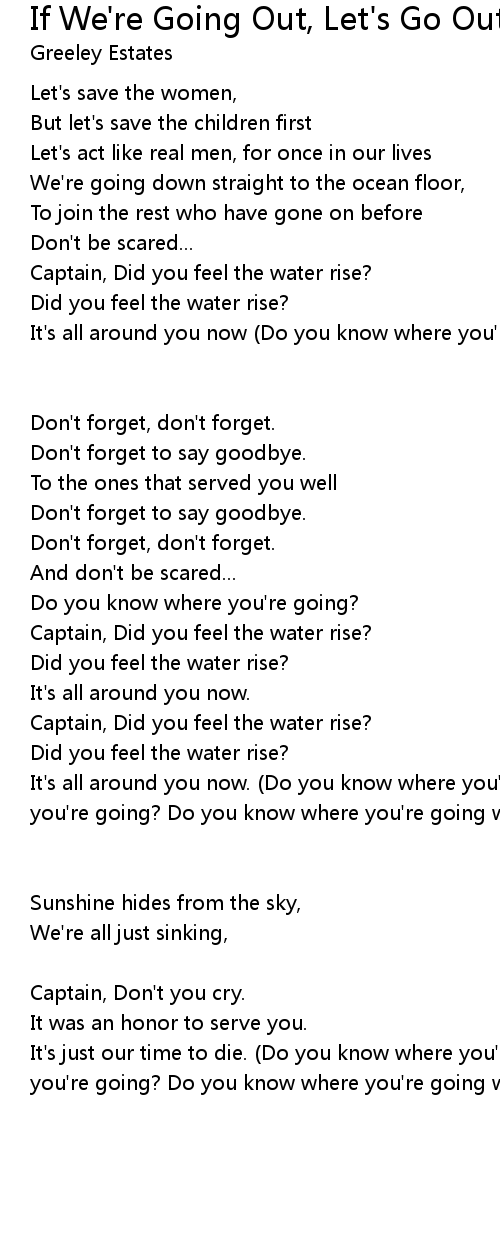 It's just our time to die. (Do you know where you're going? Do you know where you're going? Do you know where you're going when you die?) [x2] |