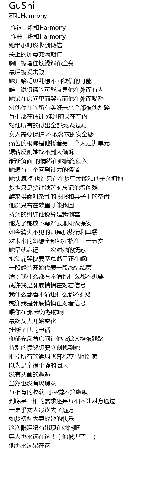 | [00:00.000] | zuò cí : yōng hé Harmony |