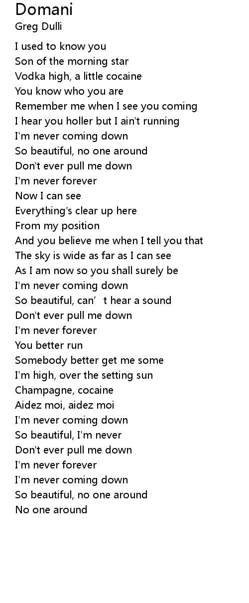 | I'm never coming down | |