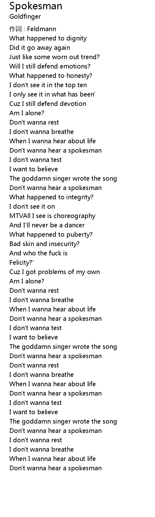 | Don' t wanna hear a spokesman | |