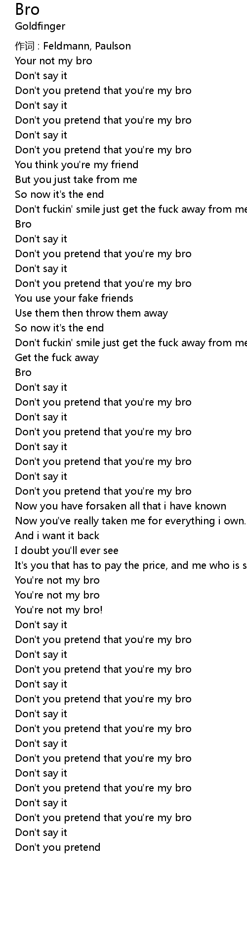 | Don't you pretend that you're my bro | |