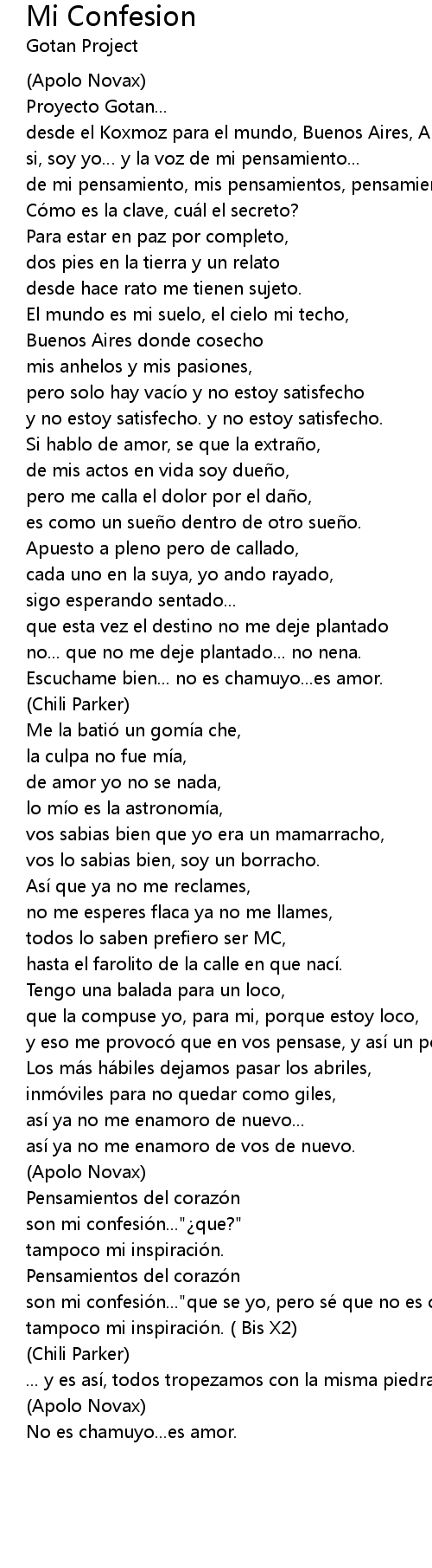 | son mi confesió n..." que se yo, pero sé que no es chamuyo" | |