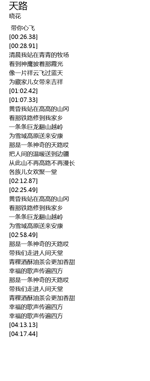 | [03:30.04] | 那是一条神奇的天路哎 |