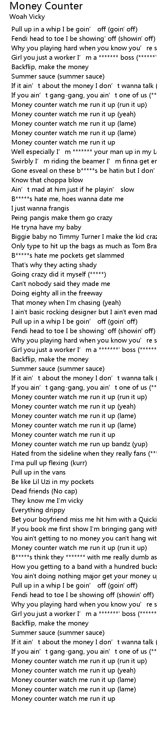 | [02:35.847] | Money counter watch me run it up (yeah) |