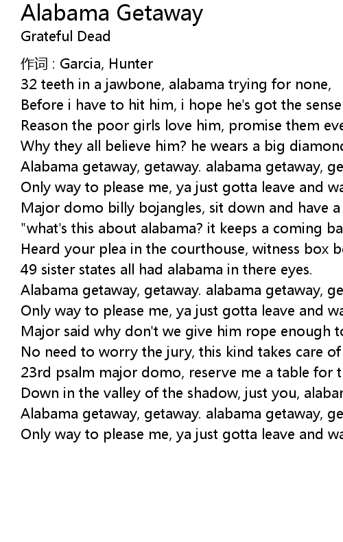| Alabama getaway, getaway. alabama getaway, getaway, | |