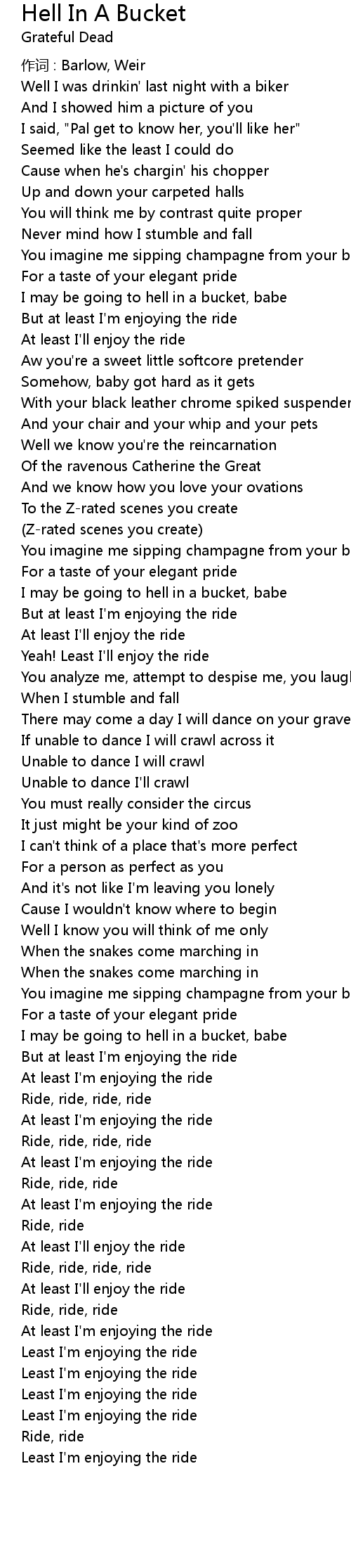 | I may be going to hell in a bucket, babe | |