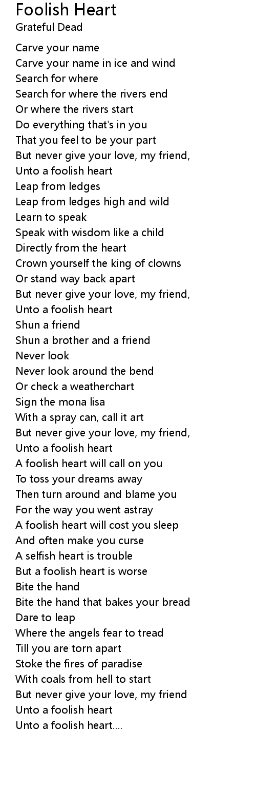 A foolish heart will call on you |