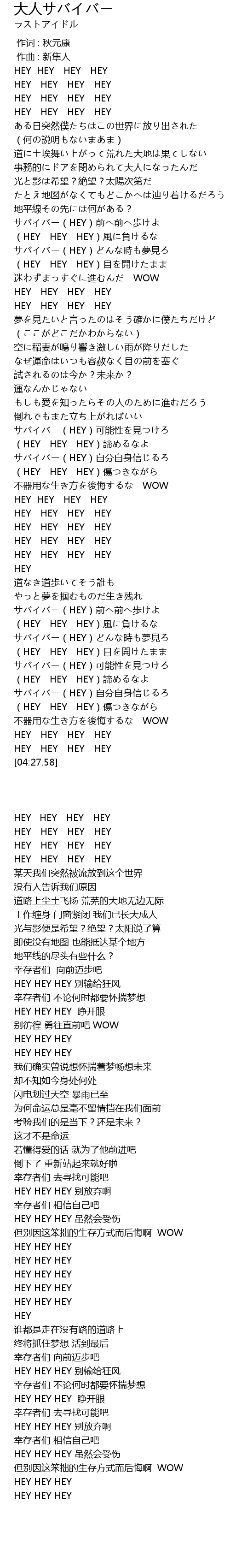 | [03:52.11] | サバイバー(HEY)自分自身信じるろ |