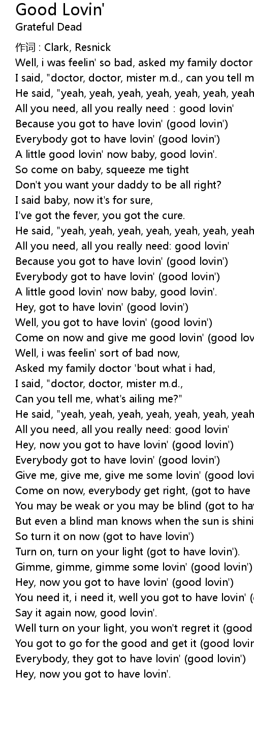 | You need it, i need it, well you got to have lovin' (good lovin') | |