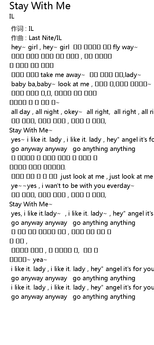 | [00:54.504] | 너를 아는데, 너밖에 없는데 , 조금만 더 다가와, Stay With Me~ |