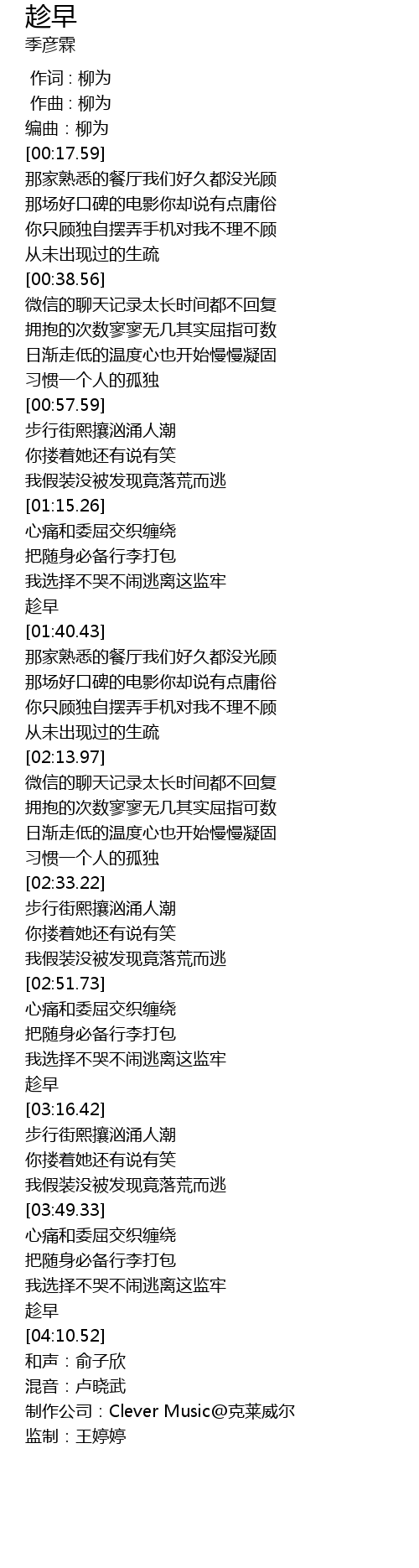 | [04:13.52] | 制作公司:Clever Music@克莱威尔 |
