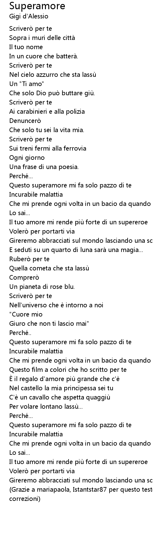 | Questo superamore mi fa solo pazzo di te | |