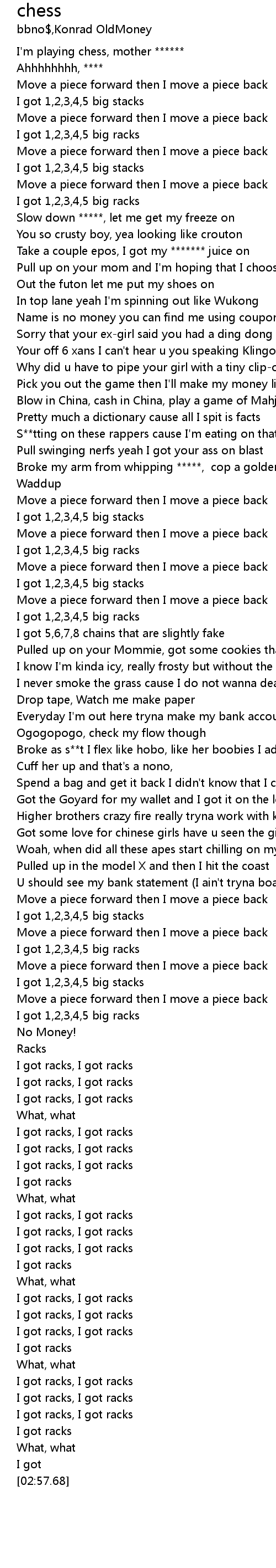 | [01:22.79] | I got 5,6,7,8 chains that are slightly fake |