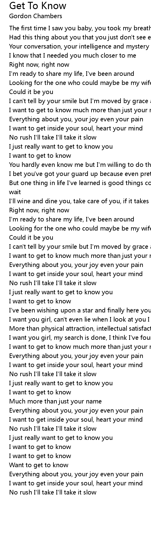 I want to get to know much more than just your name |