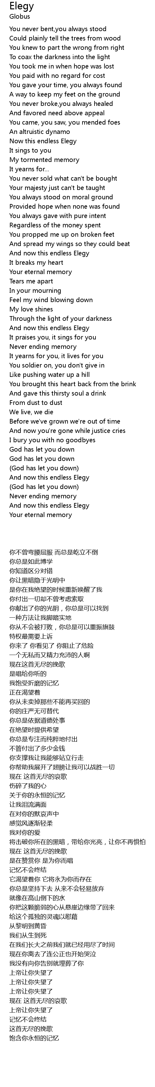 And now this endless Elegy |