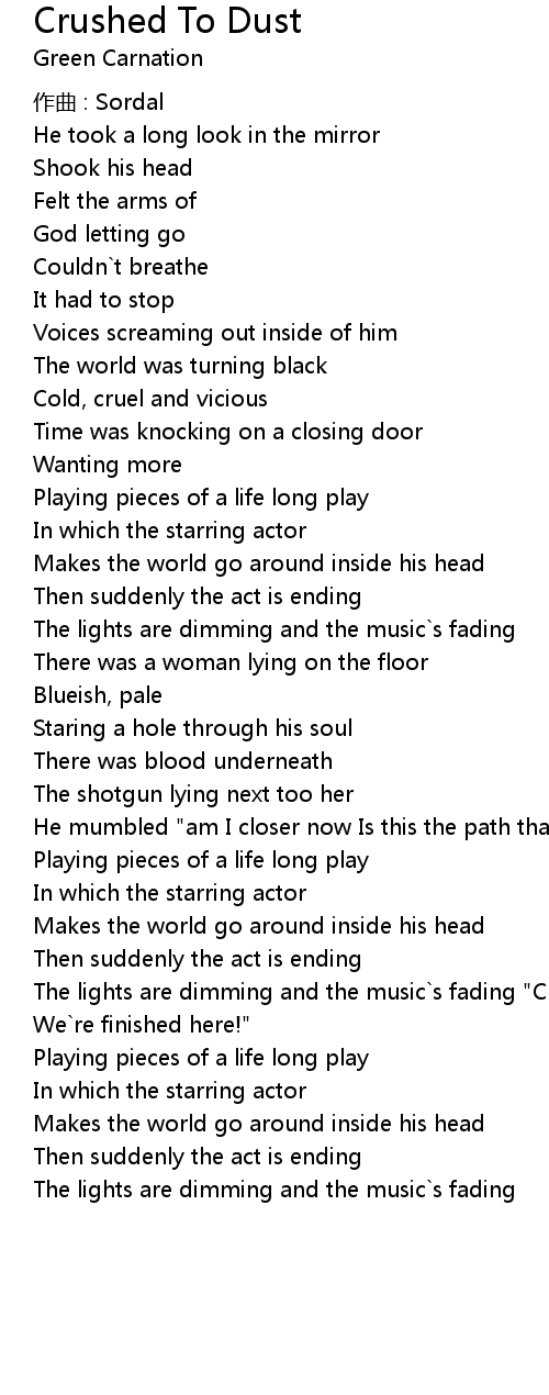 | The lights are dimming and the music s fading " Cut", he said. " Let s wrap it up! We re finished here!" | |
