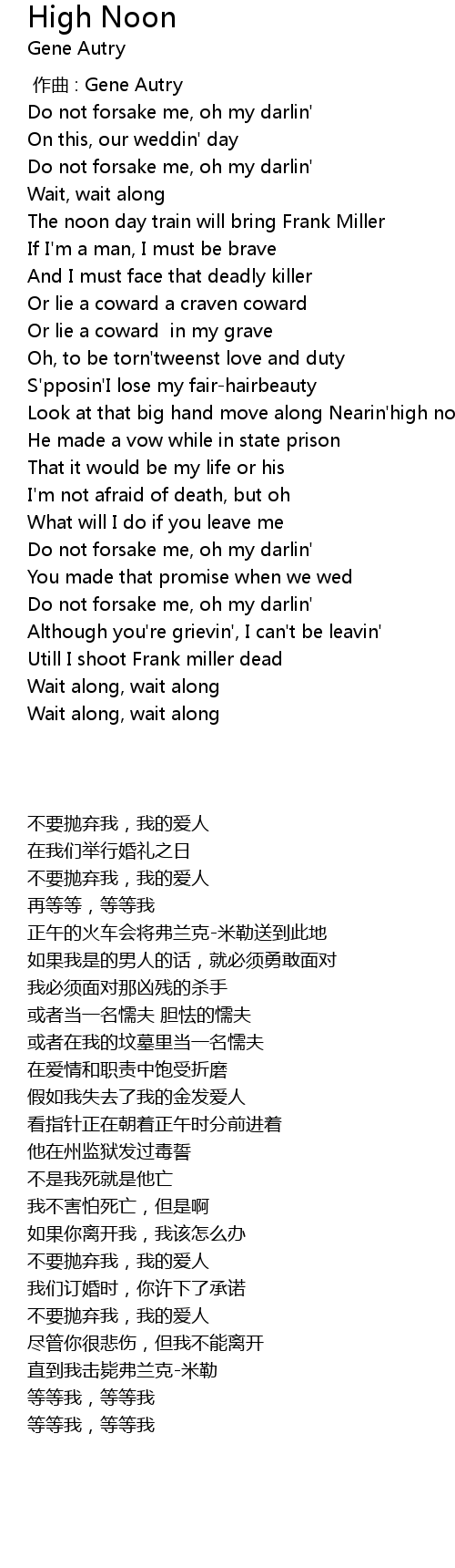 | [01:46.973] | Do not forsake me, oh my darlin' |