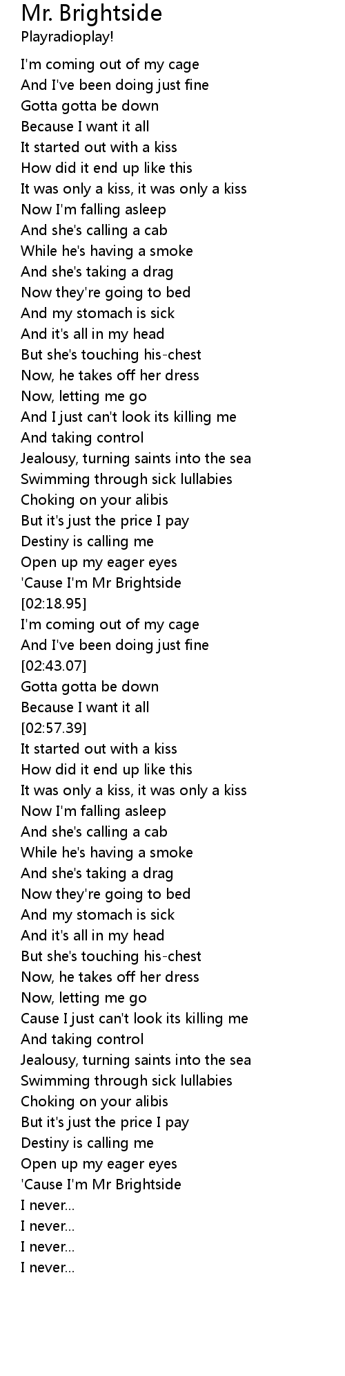 'Cause I'm Mr Brightside |