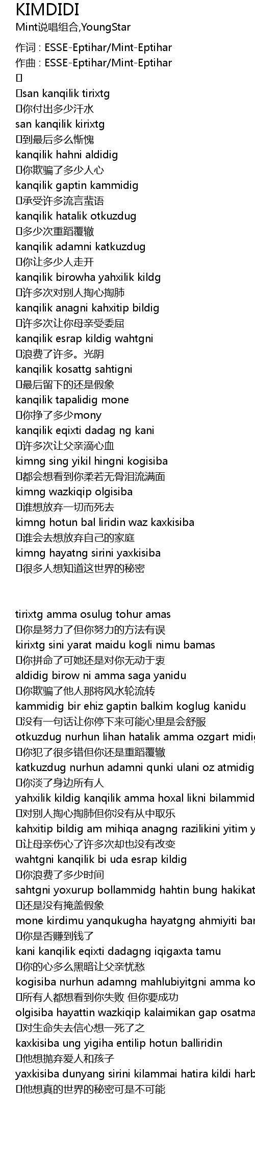 | yaxkisiba dunyang sirini kilammai hatira kildi harbir tamqa kanliridin | |