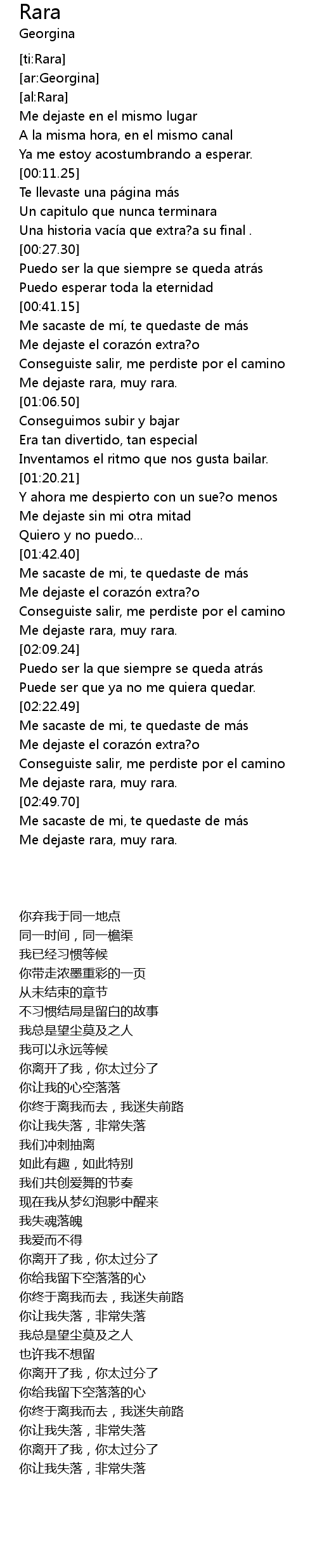 | [02:04.40] | Me dejaste rara, muy rara. |