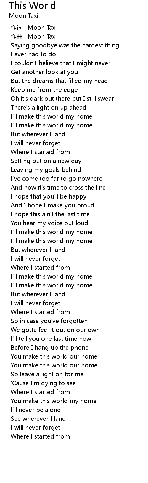 | [00:01.000] | zuò qǔ : Moon Taxi |