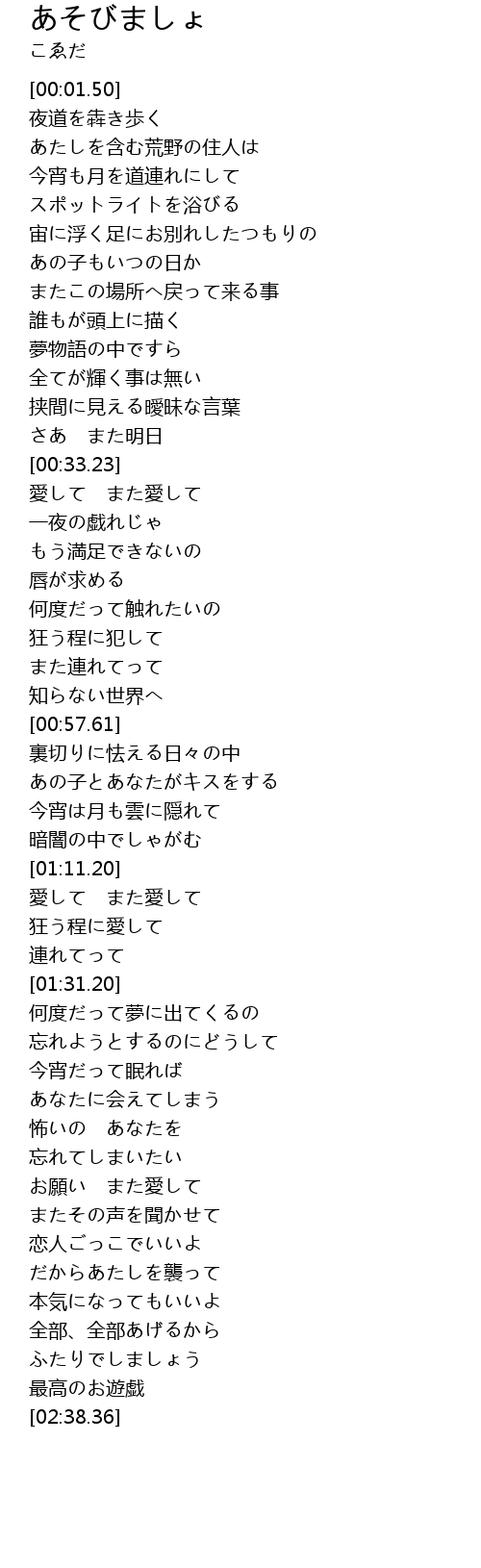 | [02:19.79] | ふたりでしましょう |