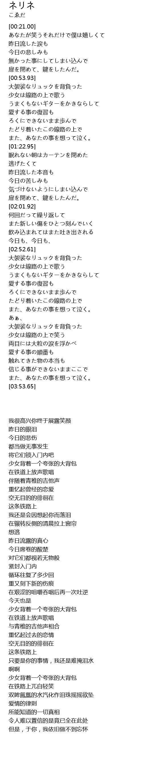 | [02:57.90] | 少女は線路の上で歌う |