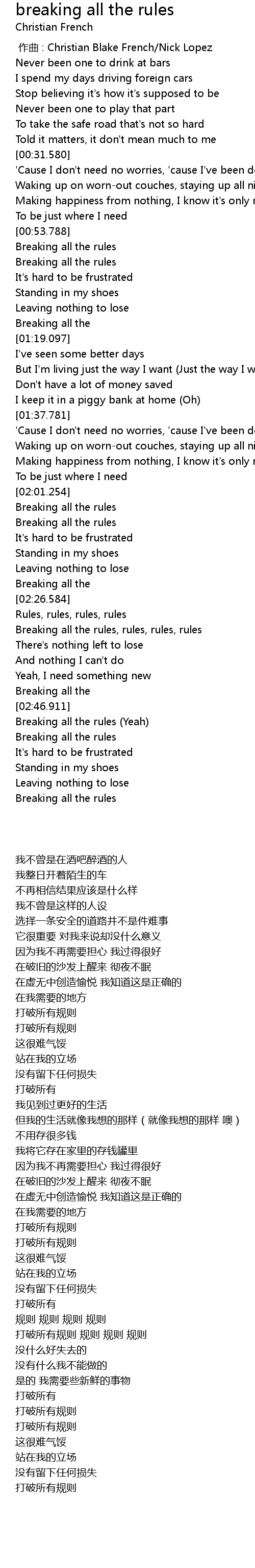 | [02:30.911] | 打破所有规则 规则 规则 规则 |
