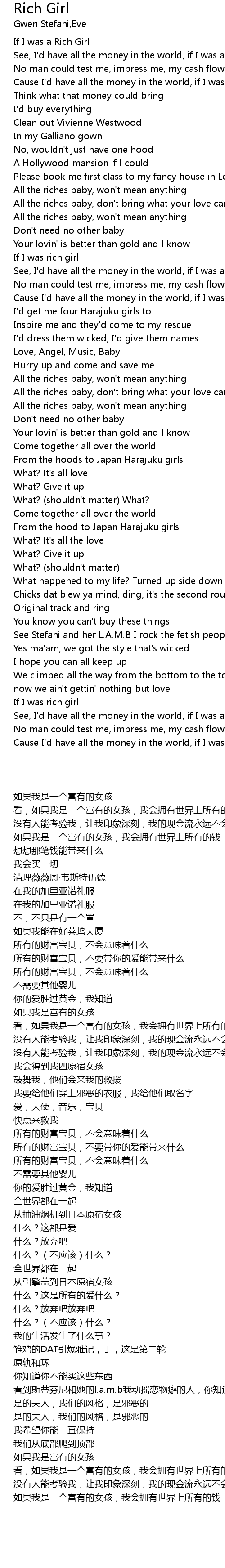 Cause I'd have all the money in the world, if I was a wealthy girl |