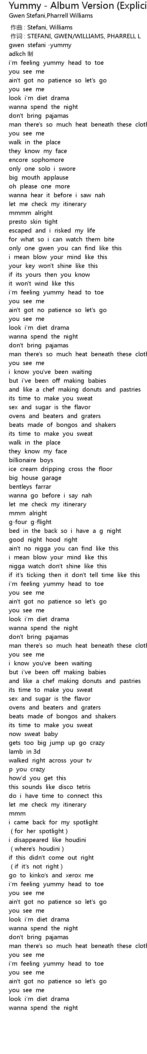 | [00:00.114] | 作词 : STEFANI, GWEN/WILLIAMS, PHARRELL L |