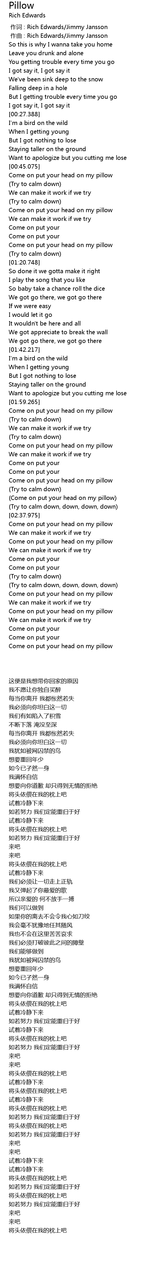 | [00:01.000] | zuò qǔ : Rich Edwards Jimmy Jansson |