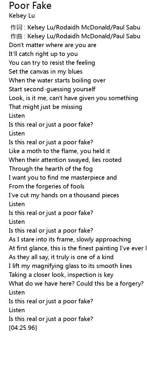 | [02:39.94] | Is this real or just a poor fake? |