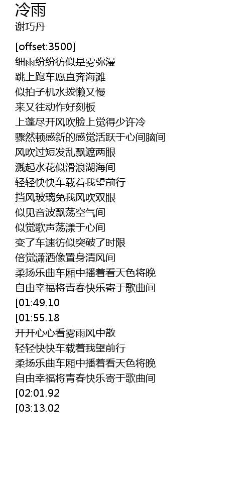 | [00:35.68] | 上蓬尽开风吹脸上觉得少许冷 |