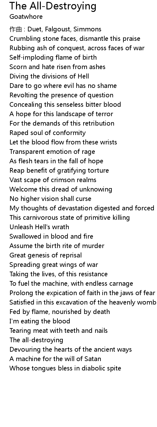 | 歌曲 | The All-Destroying |