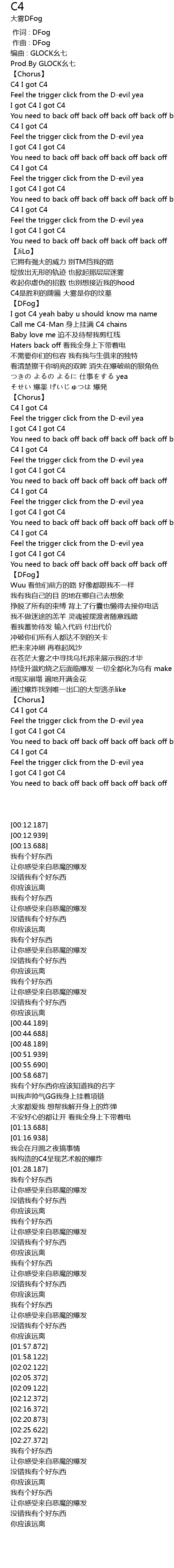 | [00:18.188] | I got C4 I got C4 |