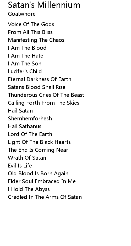 | 歌曲 | Satan's Millennium |