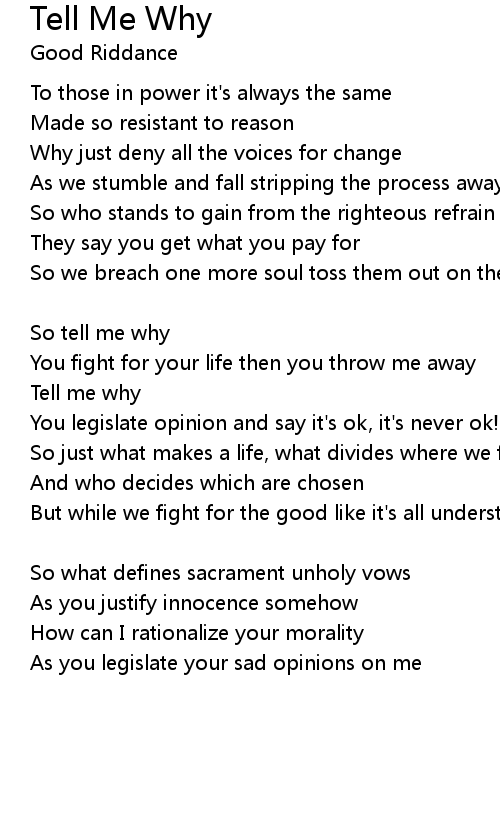 Tell me why |