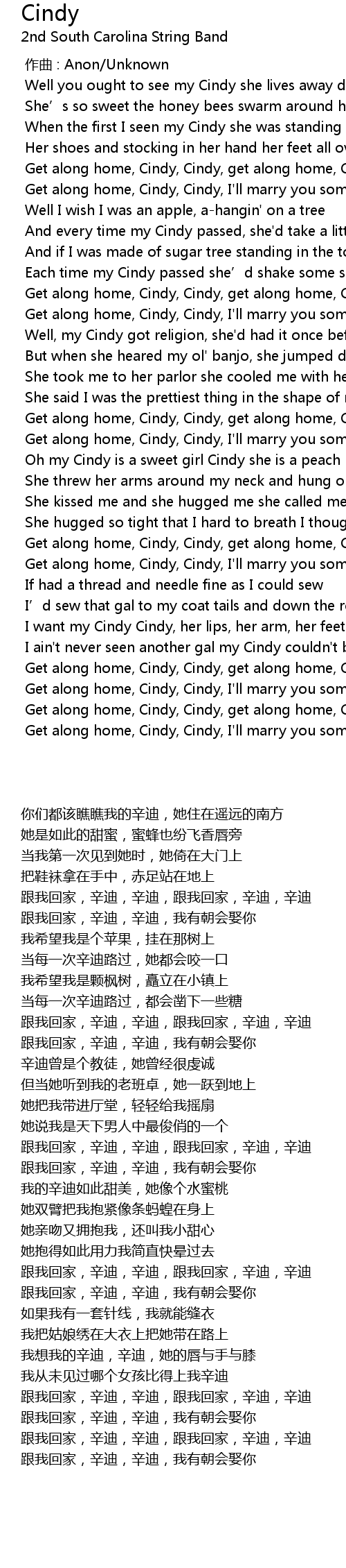 | [02:11.240] | Get along home, Cindy, Cindy, get along home, Cindy, Cindy, |